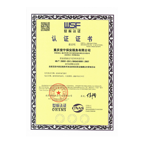 職業(yè)健康安全管理體系認證證書